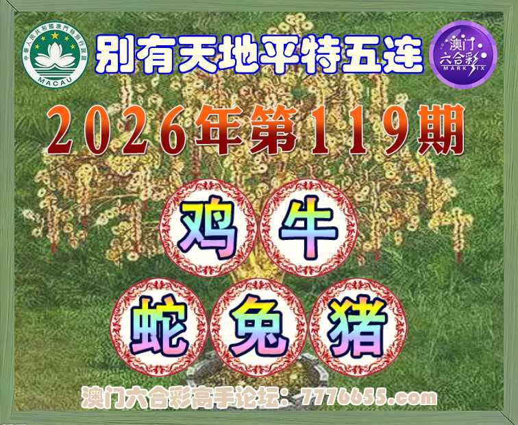 119期:《别有天地》 平特五连【鸡牛蛇兔猪】开:鸡22,牛18,蛇38,兔40,猪32
